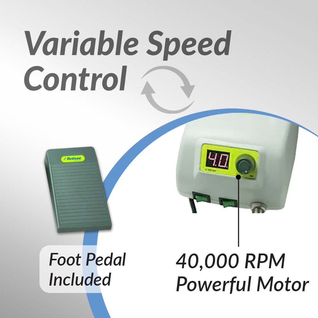 Pro Power 40K Lab Hand Piece has Brushless Motor Technology with 4.8 Ncm Torque, 1000 - 40,000rpm with a lightweight Micromotor, forward and reverse direction, and a digital Speed Control Display.