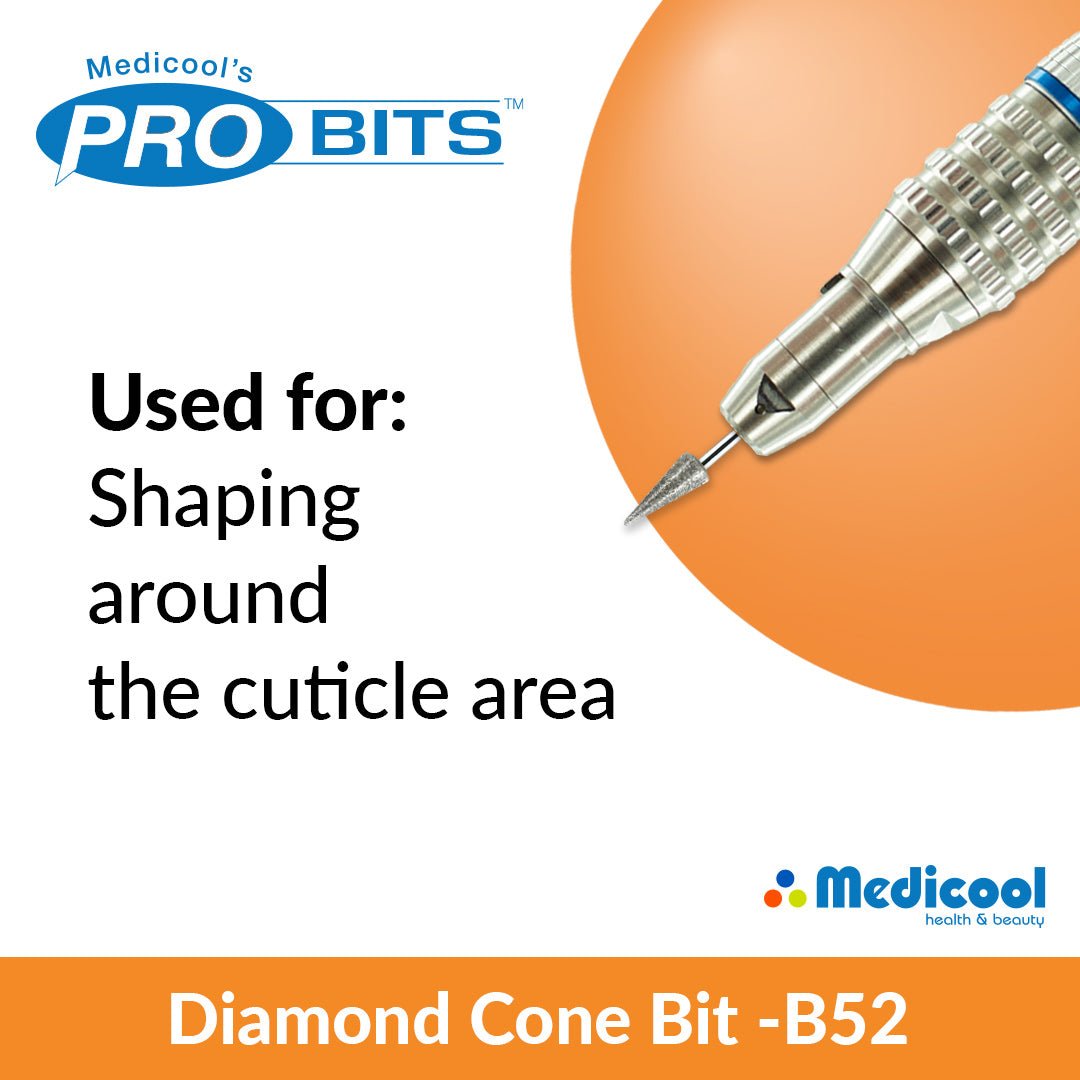 Pro BitsĀ® Diamond Cone BitĀ -B-52- for use with Medicool Drills & Files.