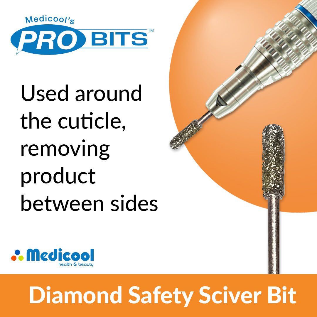 Pro Bits® Diamond Safety Sciver bit is one of the most popular cuticle bits around. It can be used around the cuticle, removing product between side, it's great on natural nails for nail prep, and safe for the beginner nail tech.