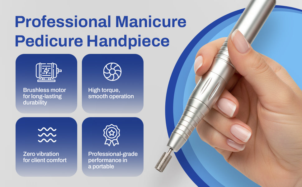 • Smooth, Quiet, Vibration-Free Operation for Comfortable Use. Enjoy quiet performance and no hand fatigue thanks to the lightweight handpiece and vibration-free design—perfect for salon use or as a home nail drill kit.