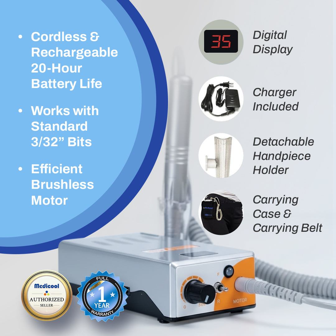Medicool Pro Power 35K Portable Cordless Nail Drill File Rechargeable Professional Electric Nail Drill Machine for Acrylic, Gel, Manicure & Pedicure