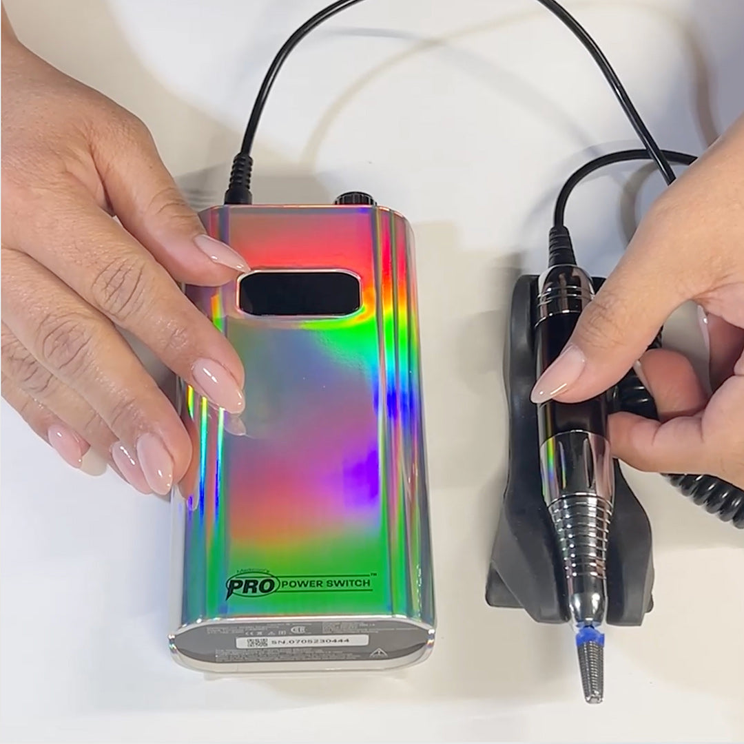 The Pro Power SWITCH is a professional and rechargeable manicure-pedicure filing system. It's a cordless, rechargeable design allows for convenient portability, making it a versatile filing system for any workstation. It clips conveniently to your belt or pocket, allowing freedom of movement.