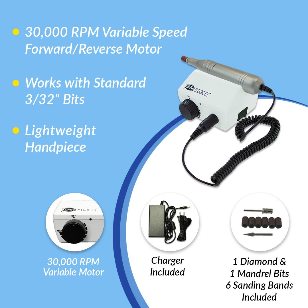 The Medicool TurboFile II Electric Nail File in white offers professional-grade nail care with precision and ease. Designed for both natural and artificial nails, it features adjustable speed settings to suit various filing needs, ensuring smooth and flawless results. Its ergonomic design provides comfortable handling for extended use, making it ideal for salon professionals and home users alike. Durable and efficient, the TurboFile II helps maintain nail health while delivering salon-quality finishes. Enhance your nail care routine with this reliable tool that combines power and control, allowing you to shape, smooth, and buff nails effortlessly. Its quiet motor and easy-to-clean components add to the convenience, making it a must-have for expert nail maintenance.