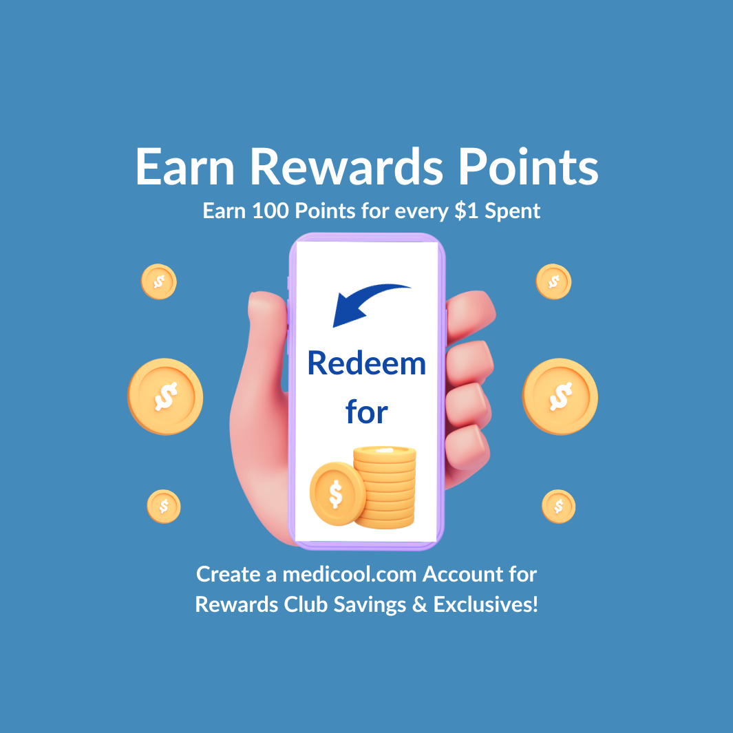 Check Product pages to see how many points are earned with product purchase. Earn points at Checkout and redeem points by creating a medicool.com account. Check out the Rewards Widget in the bottom left of the website for more information.