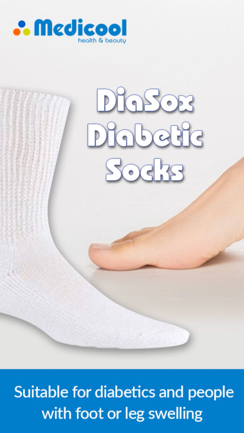 DiaSox Plus is a Care Sox style sock designed for those individuals with oversized feet and legs and can stretch up to 25" in circumference. This ultra soft product has antibacterial protection and super soft padding for pressure relief. The Care Sock style sock is perfect for serious edema, heavier people, and as a covering over bandages, dressings or casts.