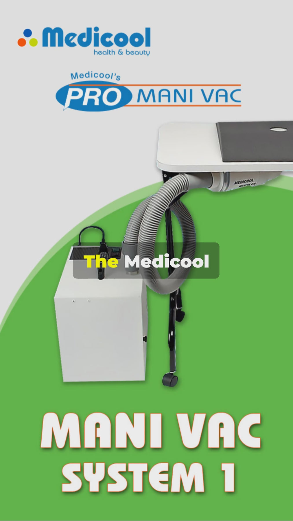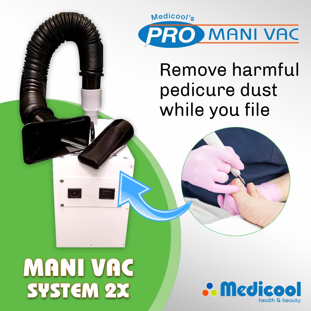 The Medicool ManiVac™ is a compact, modular vacuum system designed to remove harmful manicure dust while you file. The quiet system with only a 53 dbA (Decibel Rating) provides quiet suction with minimal noise.