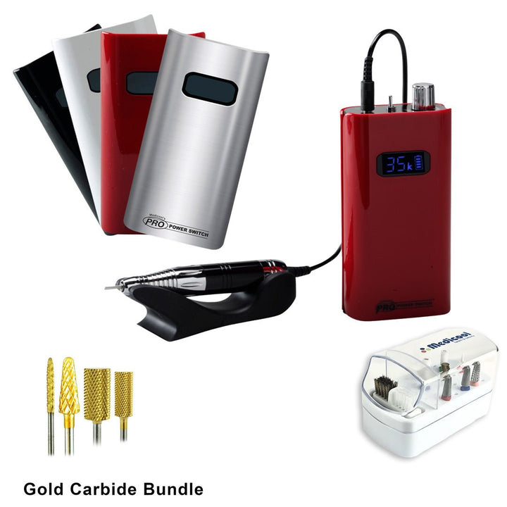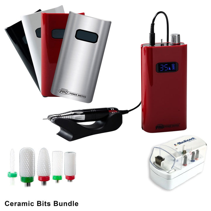 The Pro Power SWITCH is a professional and rechargeable manicure-pedicure filing system. It's a cordless, rechargeable design allows for convenient portability, making it a versatile filing system for any workstation. It clips conveniently to your belt or pocket, allowing freedom of movement.
