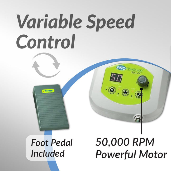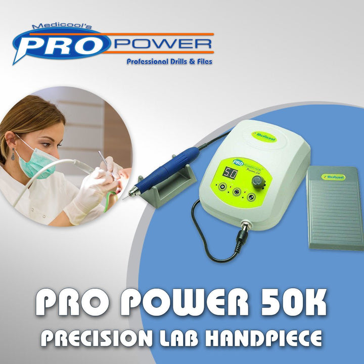 Pro Power 50K Precision Lab Hand Piece has Brushless Motor Technology with 6.8 Ncm Torque, 1000 - 50,000rpm with a lightweight Micromotor, forward and reverse direction, and a digital Speed Control Display.