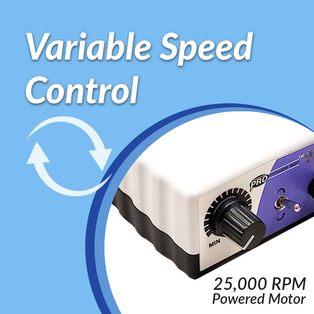The Pro Power 520 Electric Filing System providing the Professional Nail Technician with the power and versatility to complete any manicure or pedicure service. Its lightweight space-saving design allows for convenient positioning on any workstation. It's the perfect high speed professional electric Manicure-Pedicure file designed for nail care professionals.